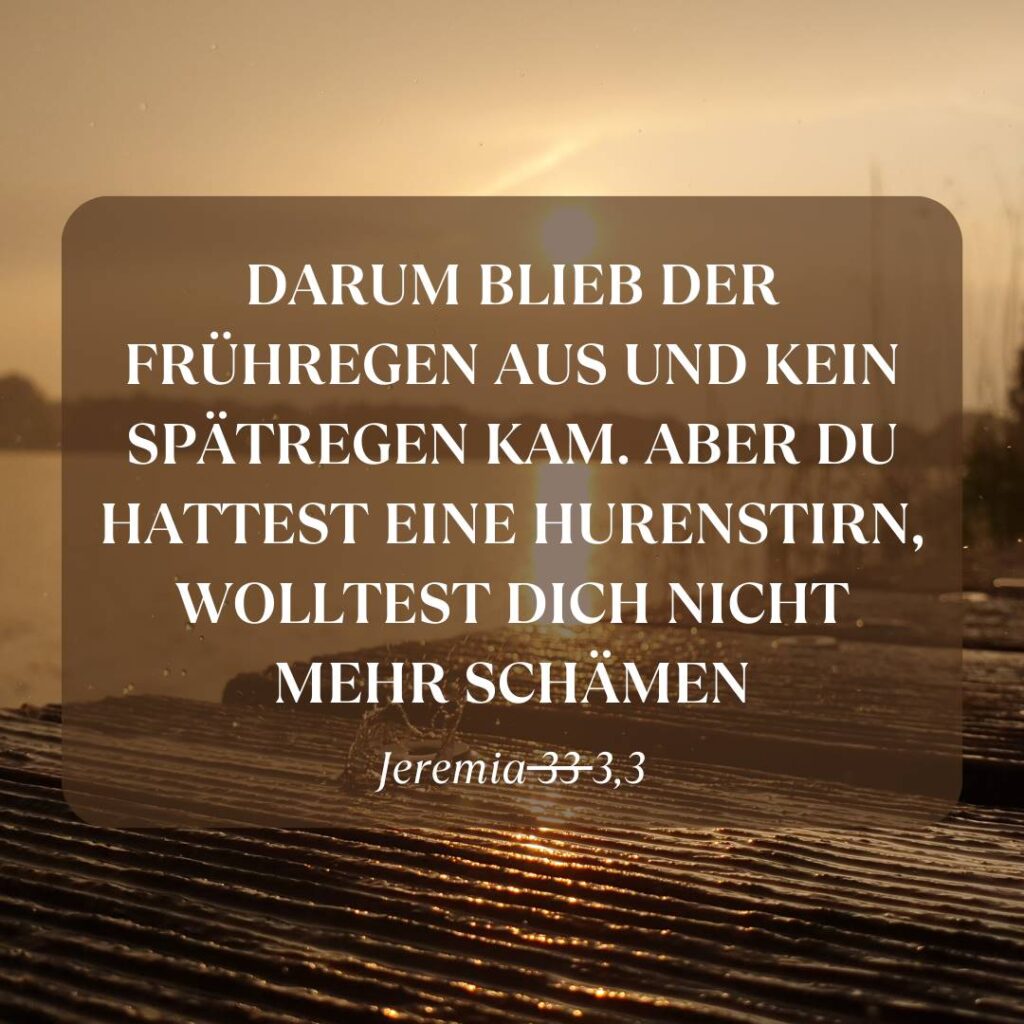 Das ist aber in Jeremiabuch eher die Ausnahme. Ein Kapitel vorher sind die Verse deutlich deprimierender. Postkarten mit Bibelversen sind eigentlich nie deprimierend, zumindest auf den ersten Blick nicht. Aus der Perspektive des Dekonstruierenden sind viele von den „schönsten“ Versen nicht mehr ganz so schön.