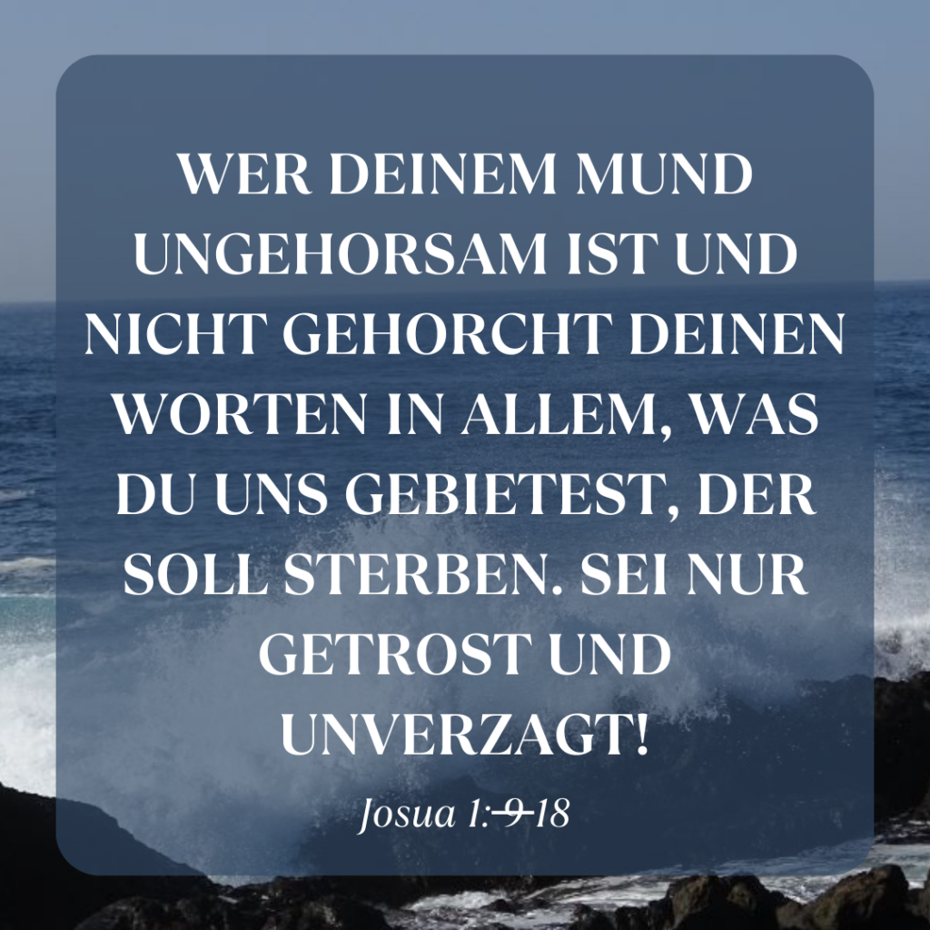Josua 1,9 ist auch Teil jedes christlichen Pep-Talks. Dabei wird selten berücksichtigt, wozu Josua hier befähigt und ermutigt wird. Die totalitäre Herrschaft mit potenzieller Todesfolge im Fall der fehlenden Unterwerfung hab ich noch nirgends in Form von Handlettering zu Gesicht bekommen.